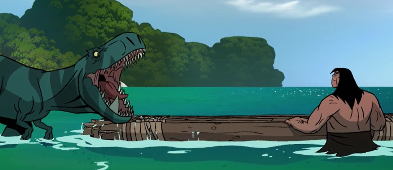 Пещерный человек впадает в глубокую депрессию, но ему удаётся отбросить суицидальные наклонности и справиться с потерей. Вскоре он понимает, что психологическая травма позволила ему понимать самку тираннозавра по кличке Клык, потерявшую своих детей и понимающую трагедию своего нового знакомого. Поначалу динозавр старается руководствоваться инстинктами и пытается доминировать над пещерным человеком, но вскоре все меняется.
